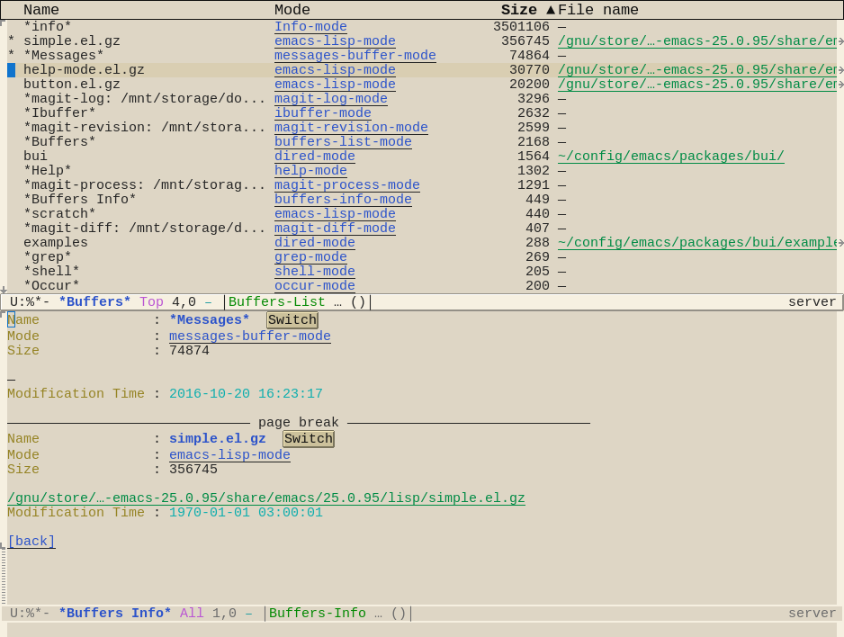 (bui-get-display-entries 'buffers 'list))This is a simplified example just to demonstrate how bui.el can be