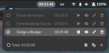- Workspace-based tracking: optionally associate timers with specific workspaces to automatically start/pause them upon switching