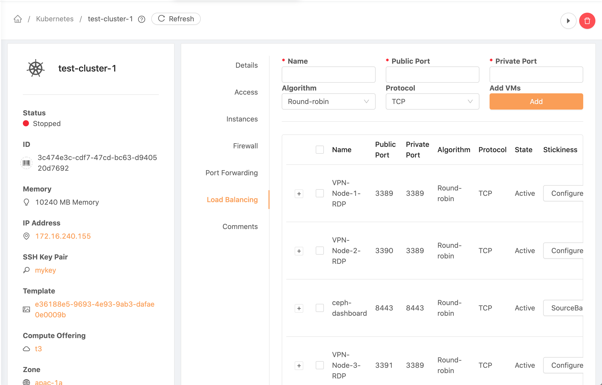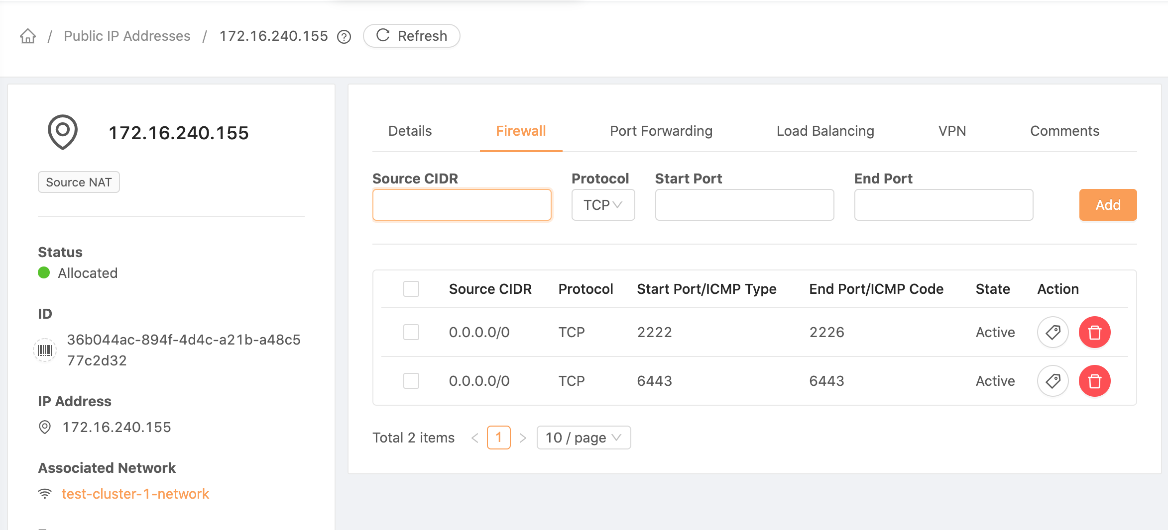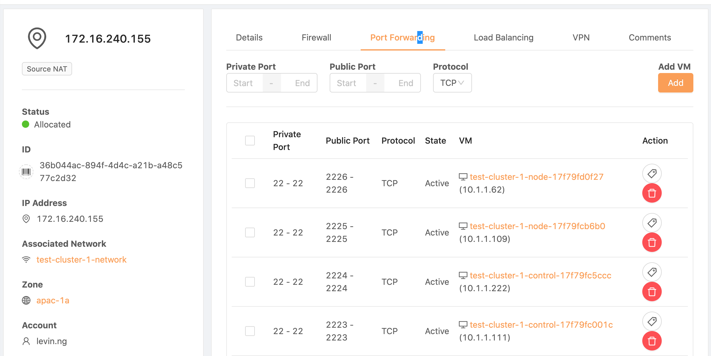 After provision a CKS instance, navigate to the CKS info page, Firewall,Port Forwarding and Load Balancing are showing all existing rule from all Public IP address within same account.