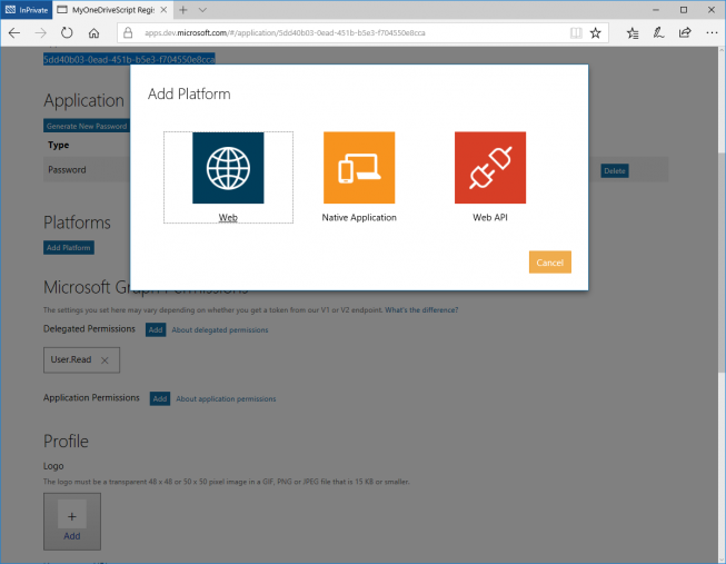 Before you start using the OneDrive module you have register your script/application. This differs depending on the OneDrive version to be used.