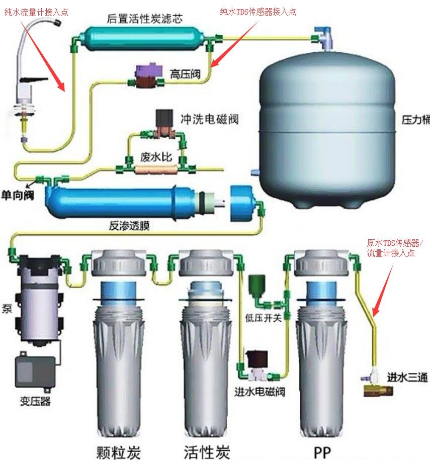| ESP8266 | TDS模块 | 原水流量计 | 纯水流量计 |