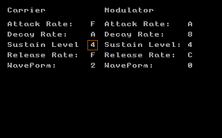 Left/Right: Increase/decrease value for the current fieldUp/Down: Move between parameter fields