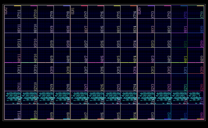 vu11pis specified as the target device, RapidLayout would automatically know that the minimal placement area is the bottom half of SLR0, which will accommodate 80 convolutional units. Then the placement in that minimal rectangular area is replicated to the entire device. In this example, the 80-block placement would be replicated 6 times, and fill the 3 SLRs of thevu11pdevice. -
