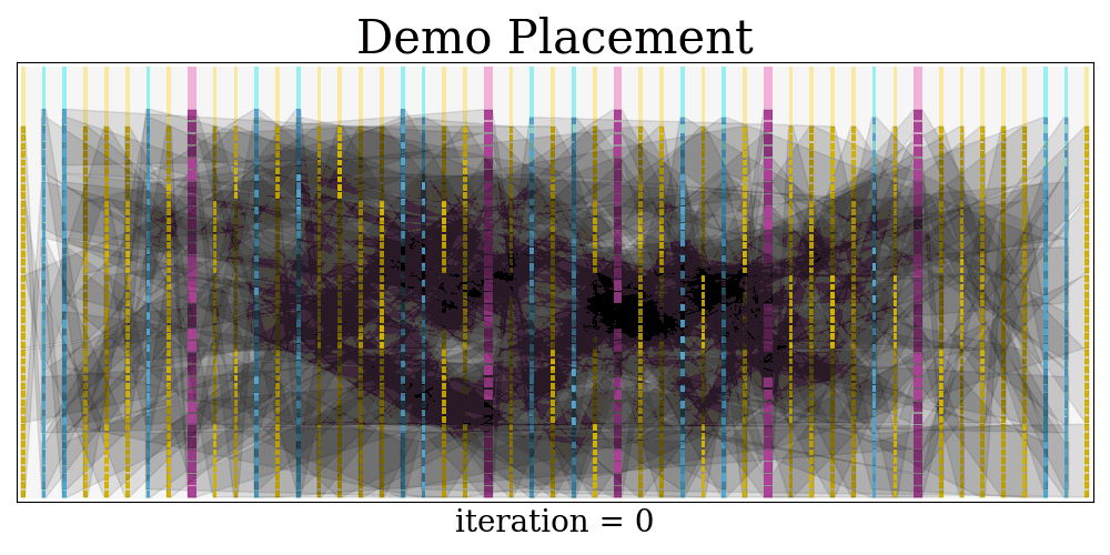 $$$$ frequency = 664.4518272425249 MHz At last, a visualization of the placement evolution process is rendered as a GIF.